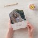 We absolutely loved how these wedding invitations turned out! We went with the standard paper stock, and it is plenty thick. One thing we probably would have changed is not doing the big white block on the front for the recipient address. Our invitations are a dark green. When we went to Staples to look at the options for labels, we saw some cute kraft stock colored ones that would have looked really cute on the dark green rather than using matte clear labels within the white block if that makes sense. They are still adorable though. I just fancied up my matte labels with a little leafy design and pretty font for the names so I feel like it helped it look more cohesive. Also, if you’re worried that they look pricey, make sure to put your quantity in because the price goes down significantly. We found this to be a super affordable, efficient and unique option that checked all of our boxes. When folded, they are the size of a little Google home screen see pictures. Perfect! Colors look exactly as we expected and the printing quality is clear and consistent.