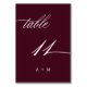 Romantic Calligraphy Wedding Number 11, Burgundy Table Number