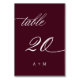 Romantic Calligraphy Wedding Number 20, Burgundy Table Number