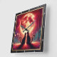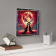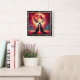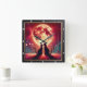 This striking square wall clock features a breathtaking digital illustration of two cat silhouettes sitting together under a massive, glowing full moon. The cats are perched on a hill, their tails curled as they look toward each other against a deep red and magenta night sky. The scene is filled with glowing pink hearts that float upward like embers, while silhouettes of whimsical trees and distant mountains add depth to the landscape. The artwork is housed within a modern black wood-textured frame with bold white numeric markers for easy timekeeping. This functional home accessory is a perfect decorative piece for cat lovers and holiday enthusiasts. Its dramatic lighting and romantic atmosphere make it an ideal gift for Valentine Day, anniversaries, or as a cozy accent in a bedroom or living area.