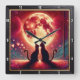 Romantic Cat Silhouette Full Moon Square Wall Clock