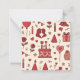 This doodle pattern features a variety of hand-drawn elements in a warm palette of reds and soft pinks, including: