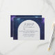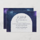Gather your guests’ responses in style with this romantic celestial wedding RSVP card. Featuring a dreamy night sky of deep navy and violet hues with twinkling stars, the front displays a modern arched layout for guests to reply, while the back showcases a delicate lovebird monogram surrounded by botanical branches. Perfect for stargazing couples and cosmic wedding themes, this RSVP card beautifully complements your celestial wedding suite. Easily personalise the text and meal preference options to match your special day.
