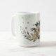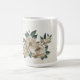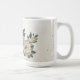 Unique coffee mug featuring romantic champagne flowers and green leaves.