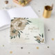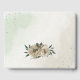 Unique wedding guest book featuring romantic champagne flowers and green leaves.