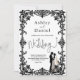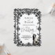 This elegant black-and-white wedding invitation is perfect for a modern wedding. The simple design features elegant black calligraphy, a chic black frame, and a bride and groom illustration on a clean white background. The invitation card includes the wedding details on the back instead of paying for a separate enclosure card.
