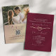 Capture the essence of your love story with our simple yet elegant chic romantic burgundy all-in-one invitation. Featuring modern script and a formal touch of gold rope heart, it sets a sophisticated tone. Complete with a cherished photo of the couple and convenient website and QR code for RSVP, it's the perfect blend of style and practicality for your special day.