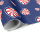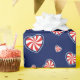 A Romantic Heart Shaped Peppermint Candy Wrapping Paper For Christmas Designed On Blue