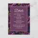 This elegant wedding details card features a rich plum and mauve floral design with a refined double-line border and graceful script typography. Designed to share important wedding information such as accommodations, reception details, and additional notes, this card provides guests with a clear and polished guide to the wedding weekend. The coordinating floral back adds a luxurious finishing touch, making it a beautiful and cohesive addition to formal invitation suites.
