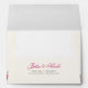 Expectations met; I liked that I had the opportunity to include our address on the back of the envelope. This color matched very well with my save the date. The color was the same as shown above. I had our address labeled on the back of the envelope and the font/printing met my expectations.