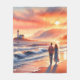 Romantic Coastal Sunset Lighthouse Walk Fleece Blanket