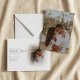 This elegant wedding piece blends a romantic photo of the happy couple into a soft white background, creating a dreamy and modern aesthetic through a subtle photo gradient effect. The classic serif font enhances the timeless appeal, perfectly complementing the minimal clean neutral design. The full-cover photo on the back adds a sophisticated and personal touch, making this wedding detail heartfelt and memorable.