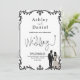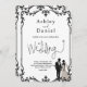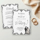 This elegant black-and-white wedding invitation is perfect for a modern wedding. The simple design features elegant black calligraphy, a chic black frame, and a bride and groom illustration on a clean white background. The invitation card includes the wedding details on the back instead of paying for a separate enclosure card.