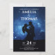 This enchanting wedding invitation features a stunning starry night sky as its backdrop, with a romantic silhouette of a couple embracing under the stars. This invitation evokes a sense of wonder and magic, perfect for a wedding with a celestial theme.