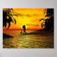 Romantic Couple Mermaid Sunset Palm Trees Ocean Poster