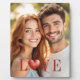Capture your most cherished moments with this beautiful photo plaque, perfect for celebrating your love. The design features a heartwarming red heart symbol alongside the word 'LOVE', set against a vibrant backdrop. This elegant piece is an ideal way to commemorate anniversaries, Valentine's Day, or simply to express your affection. Display your favorite couple's photo and let this plaque be a constant reminder of your special bond and enduring romance. It's a thoughtful addition to any home decor, bringing warmth and a touch of love to your living space.