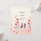 This wedding invitation showcases a charming silhouette of a couple holding hands, surrounded by vibrant red hearts and delicate floral accents. Set against a soft pastel pink background, it evokes a sense of romance and whimsy. Perfect for love-themed designs, Valentine's Day, anniversaries, or wedding-related creations, this piece combines playful elegance with heartfelt sentiment.