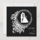 This design is a modern touch on a vintage idea. In the centre there is a circle framing a bride and groom in white with a floral accent surrounding it and coming down on the left side. This elegant design has a customise-able background that you can set to any colour you like. Simply click on the customise button, then the edit button and set the background colour. This set has invitations, save the date cards, response cards, thank you cards, table number tent cards, envelope seals, wine labels, binders, and return address labels available. Use the envelope seal stickers for any of your DIY gifts - these are available in both large and small sizes! All elements are printed on our high quality products, they do not include any real gold, jewels, embossing, or other textile elements. All designs are copyright Noteable Expressions, Inc. All rights reserved.