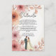 This elegant watercolor floral wedding enclosure card is perfect for a modern wedding. The romantic design features an elegant watercolor floral frame with a bride and groom illustration and black calligraphy on a white background.