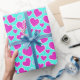 Customisable lovely wrapping paper sheet for Valentine's Day with unique hand drawn pink hearts pattern on blue background.