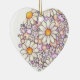 Heart shaped ornament with pink, lavendar, and peach flowers and berries. Original drawing with coloured pencils. Artist's logo and name are on the back.