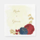 Romantic dark red & navy blue flowers gold napkin