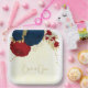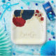 Romantic dark red & navy blue flowers with gold leaves botanical wedding paper plate.