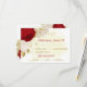 Romantic dark red & white flowers with gold leaves botanical wedding response card with meal choice option.