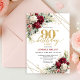 Romantic Deep Red Gold Floral 90th Birthday Invite
