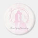 A "Thank you for coming" wedding favour magnet with a beautiful romantic wedding design of the framed kissing silhouettes of the bride and groom against a dreamy pink background.