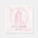 A set of paper napkins with a beautiful romantic wedding design of the framed kissing silhouettes of the bride and groom against a dreamy pink background. Personalise with the couple's names and wedding date!