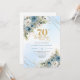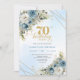 Romantic dusty blue florals gold frame 70 birthday invitation