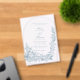 This romantic and classic design features a lush border of elegant line drawn roses, mixed flowers, lily-of-the valley, foliage and vines in a timeless dusty blue color. Also included are editable text fields and custom calligraphy text.