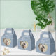 Custom dusty blue wedding photo thank you favour box featuring a heart shaped photo frame.