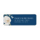 Romantic Dusty Blue Welcome Watercolor Floral Wedding Return Address Labels features dusty blue celeste and delphinium flowers with eucalyptus greenery accented with butterflies. Add your custom text in elegant modern calligraphy script. Designed for you by Evco Studio www.zazzle.com/store/evcostudio