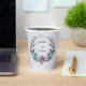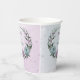 Unique paper cup featuring romantic dusty purple and blue flowers and green leaves.