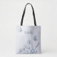Unique simple tote bag featuring romantic and elegant dusty blue flowers on light blue background