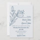 Unique simple wedding invitation featuring romantic and elegant dusty blue flowers on light blue background