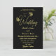 Unique simple wedding invitation featuring romantic and elegant gold butterflies on black background