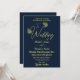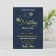 Romantic elegant gold butterflies navy invitation