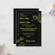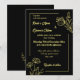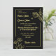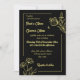 Unique simple wedding invitation featuring romantic and elegant gold flowers on black background