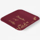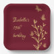 Unique simple wedding paper plate featuring romantic and elegant gold flowers and butterflies on burgundy background