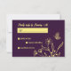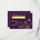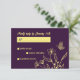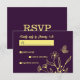 Unique simple wedding response card featuring romantic and elegant gold flowers on purple background