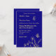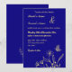 Unique simple wedding invitation featuring romantic and elegant gold flowers on royal blue background