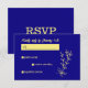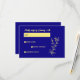 Unique simple wedding response card featuring romantic and elegant gold flowers on royal blue background