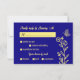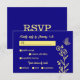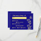 Unique simple wedding response card featuring romantic and elegant gold flowers on royal blue background