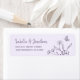Unique simple wedding return address label featuring romantic and elegant mauve flowers and butterflies on light purple background