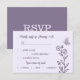 Unique simple wedding response card featuring romantic and elegant mauve flowers on light purple background