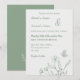Unique simple wedding invitation featuring romantic and elegant sage green flowers and a butterfly
