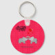 Romantic Elephants & Red Hearts On Polka Dots Key Ring